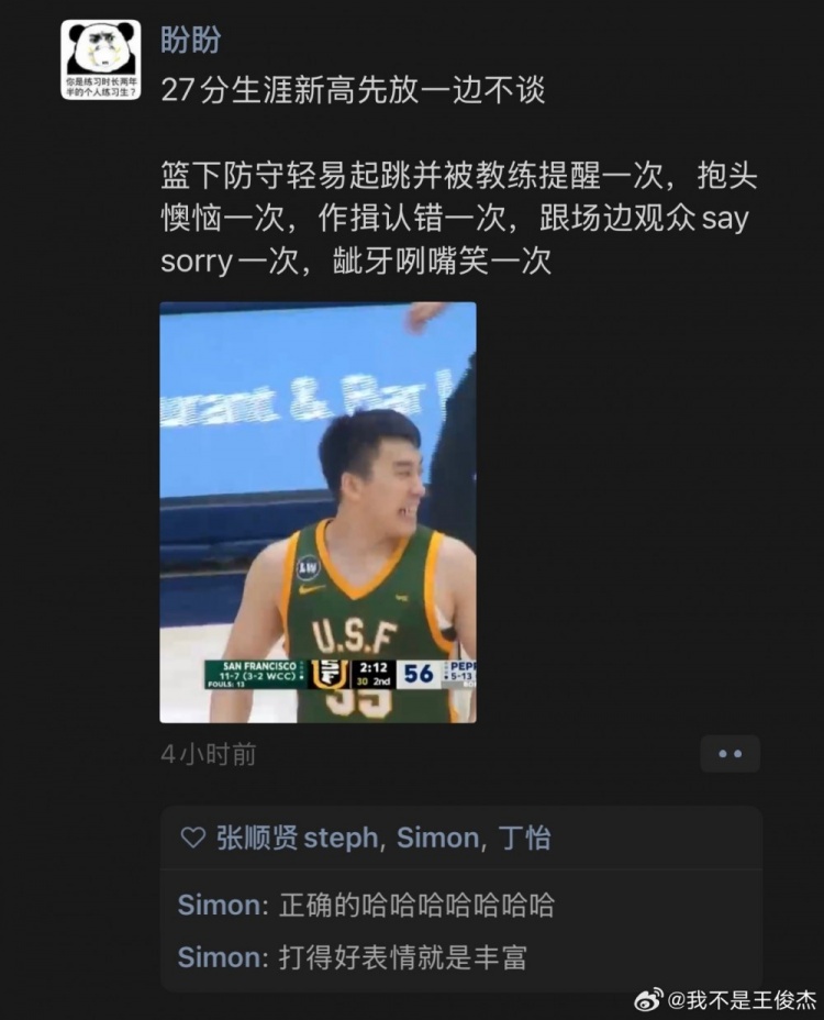 v体育-重回首发砍新高27分!王俊杰转发调侃自己的言论并配文:天才