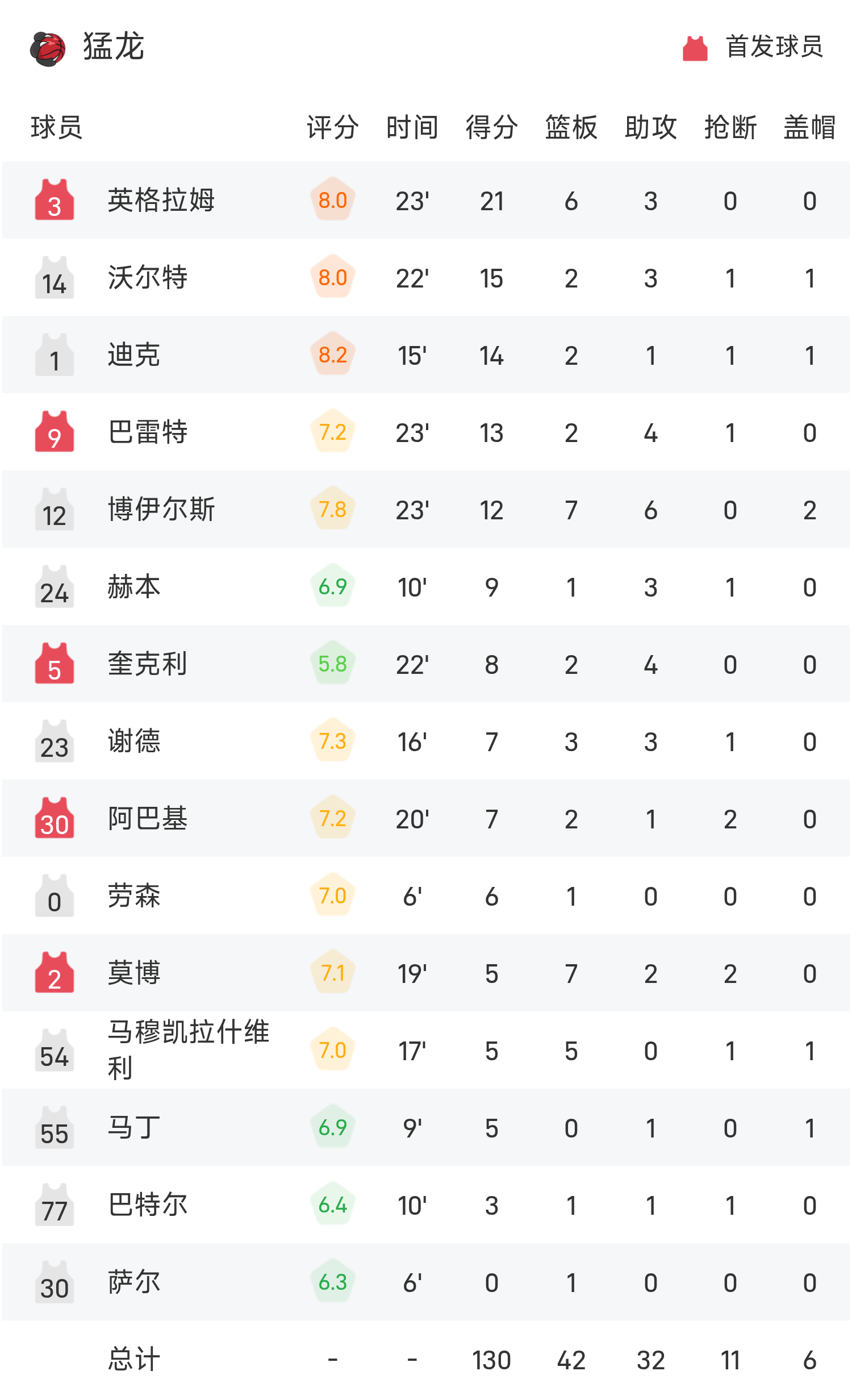 球员数据 查看更多